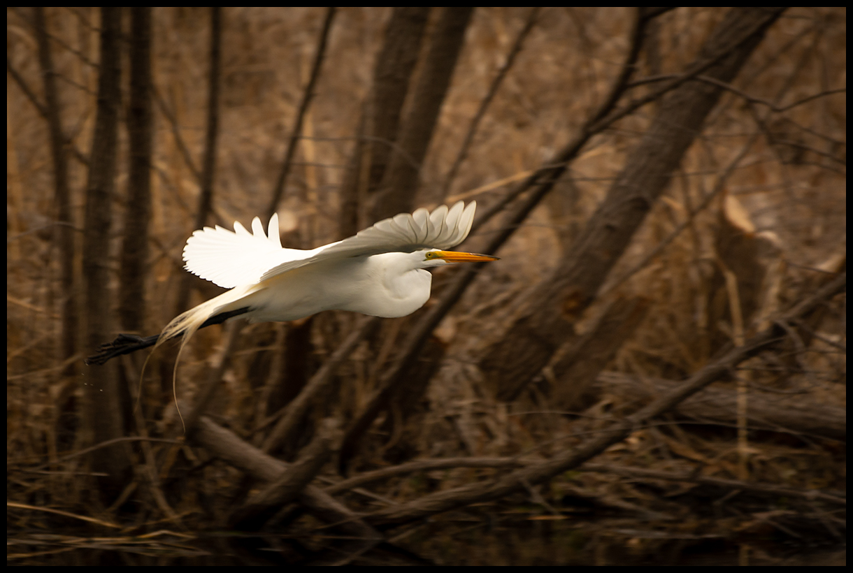 I was hiding in some willows waiting on a pair of Buffleheads to swim by and was lucky enough to have this Great Egret fly in and land about 100 feet away from me. I was hesitant to even raise my camera but waited until he looked the other way and captured this picture once he turned back around. I’m amazed by the plumage these birds have during mating season. The camera doesn’t really do it justice.